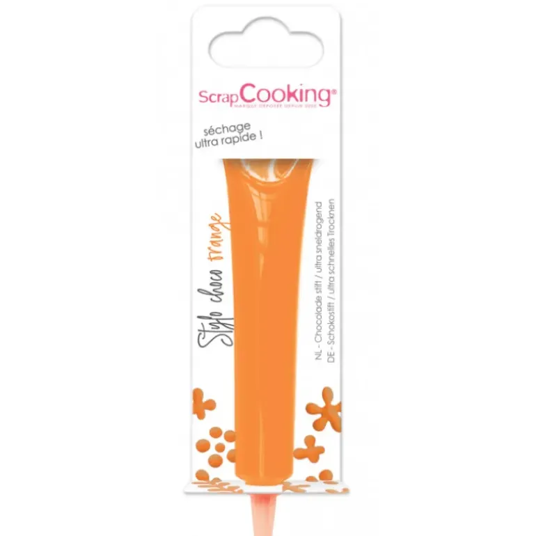 Lorsque vous décorez vos gâteaux et biscuits, choisissez la simplicité et le bon goût en vous procurant le stylo alimentaire Scrapcooking. Sa couleur s’approchant d’un couché de soleil ou des fruits exotiques aux saveurs acidulées, le stylo chocolat orange vous permettra d’ajouter des couleurs et de la vie à vos gâteaux et biscuits. D’une simple pression, vous ferez s’écouler gourmandise et couleur rayonnante sur vos pâtisseries. Le stylo chocolat orange 25 g se tient dans une seule main et se manipule très aisément : écritures et dessins seront simples à exécuter.