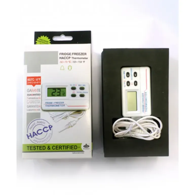 Le thermomètre de frigo dispose d’une alarme programmable. De plus, il affiche la température avec une précision de +/- 0,5°C.
