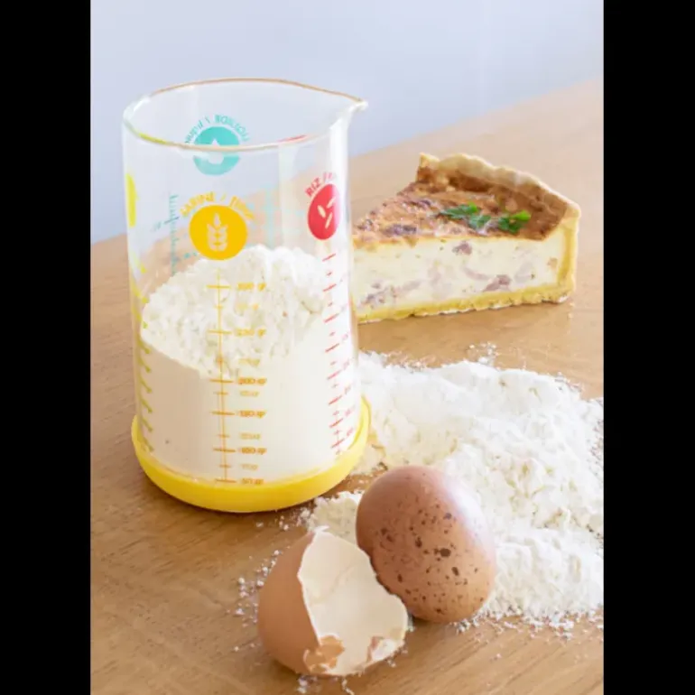L’ustensile de mesure est en verre borosilicate, équipé d’un bec verseur pour transvaser vos aliments aisément et d’une base en silicone jaune amovible qui apportera couleur, stabilité et protection contre les éventuels chocs. Grâce à la solidité de son matériau, le verre mesureur résiste aux chocs thermiques puisqu’il peut passer du micro-ondes (jusqu’à 300°C) au réfrigérateur, selon vos recettes, pour faire chauffer du lait ou garder au frais une crème avant de la transformer en chantilly !