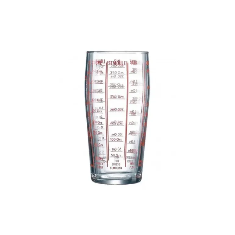 Ce verre doseur Luminarc vous permet de doser et mesurer tous vos liquides mais aussi vos ingrédients comme la farine, le cacao ou le sucre grâce aux multiples graduations que vous trouverez sur le verre.