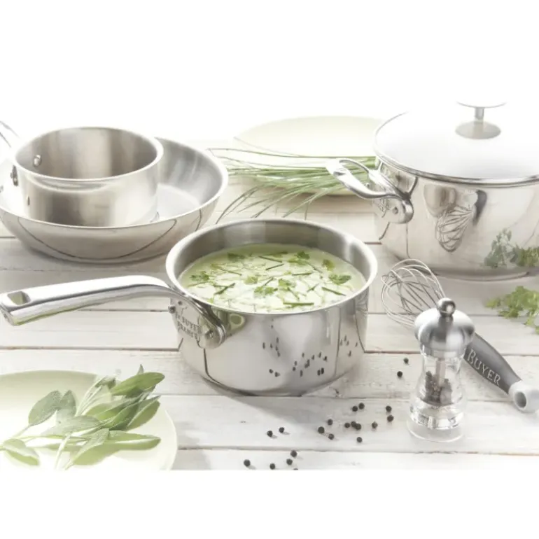 La batterie cuisine inox De Buyer est également disponibles avec 4 casseroles inox (14, 16, 18 et 20 cm).