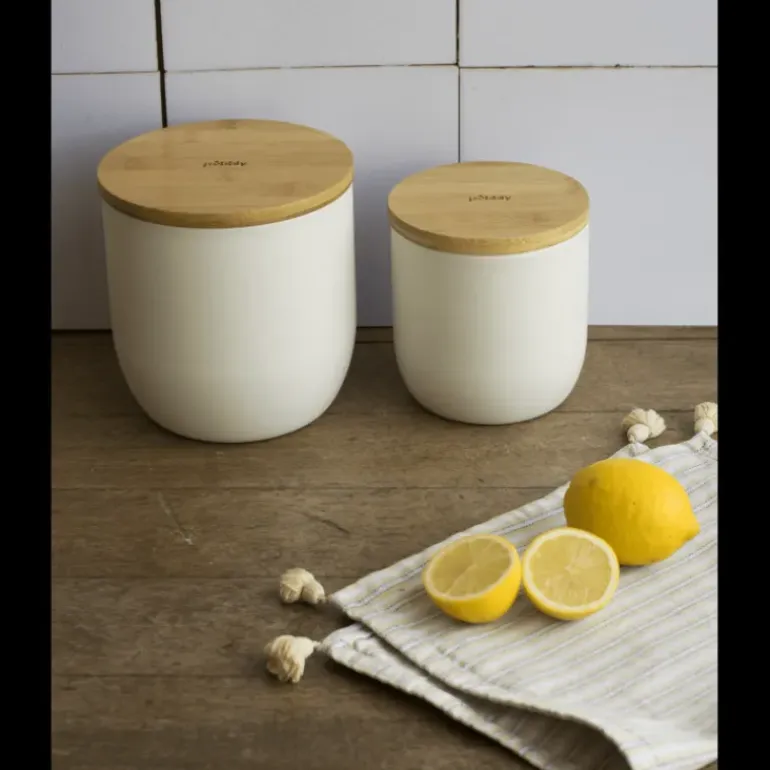 Habillée d’une couleur crème raffinée et d’un couvercle en bambou naturel, cette boîte de rangement alimentaire pourra totalement trôner sur votre plan de travail et se mariera avec tous vos intérieurs.
