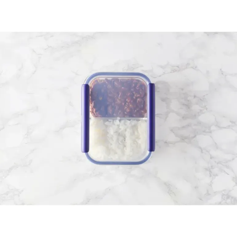 Résistante aux températures extrêmes (-20°C à 400°C), la boîte de conservation est composée de 2 compartiments et peut s’utiliser comme lunchbox à emporter partout où vous voulez, que ce soit pour vous ou pour vos enfants ! Ces derniers seront d’ailleurs séduits par les nombreux coloris de la gamme Stor’eat. La boîte alimentaire compartimentée bleue possède une belle contenance de 1,45 litre pour conserver aliments secs mais aussi restes de repas copieux entre amis ou en famille. Robuste, pratique et hermétique, la boîte de conservation Stor’eat est en verre borosilicate (sans bisphénol A) et possède un couvercle en polypropylène, des poignées et un joint silicone amovibles. Conçue pour un usage quotidien et polyvalent, la boîte alimentaire Mastrad est compatible avec le four, le congélateur, le réfrigérateur et même le micro-ondes.