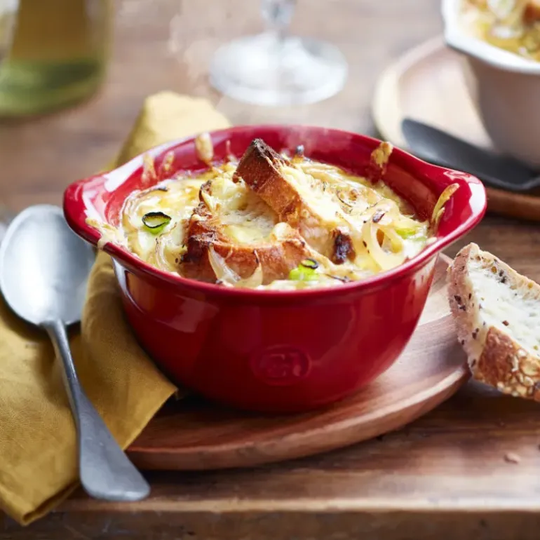 Avec le bol à gratiner Emile Henry, vous allez pouvoir préparer de savoureux plats réconfortants au format individuel. Le plat au four rond est idéal pour les plats gratinés comme le mac’n cheese, le tian de légumes ou le classique gratin dauphinois. Mais le plat individuel s’adaptera aussi à bien d’autres recettes comme une soupe à l’oignon ou un chili con carne qui seront encore plus succulents avec une savoureuse croûte dorée au four.