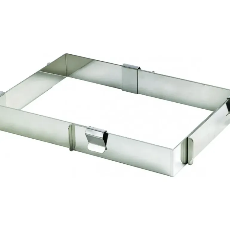 Plus besoin d’avoir une quantité astronomique de cadre à pâtisserie pour avoir les dimensions souhaitées. Découvrez votre nouveau compagnon, le cadre à pâtisserie extensible avec système de blocage sur les 4 cotés. D’une part, vous pouvez choisir la taille que vous souhaitez et d’autre part, avec le système de blocage plus de risque que les parois glisses.