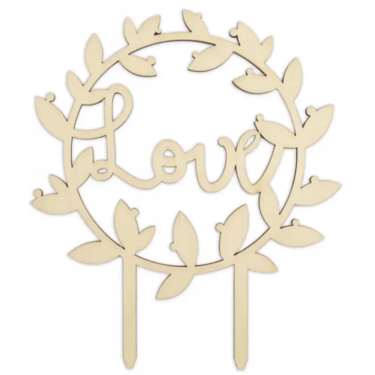 Décorez vos gâteaux de mariage ou desserts de Saint Valentin à l’aide de ce cake topper « Love ». Le mot « love » (amour) est mis en valeur au centre d’une couronne de lauriers. Fait de bois, ce décor pour gâteau est tendance et réutilisable de nombreuses fois.
