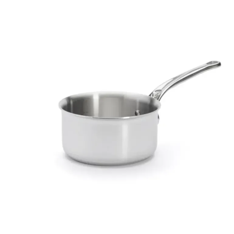 La gamme Affinity : Dimensions généreuses, arrondi intérieur, bord verseur, manche ergonomique, lignes élégantes, matière multicouches (7 couches pour 2,8 mm d’épaisseur), fabriquée en France, tous feux et Induction. La casserole De Buyer Affinity 16 cm dispose de graduations gravées à l’intérieur de cette dernière facilitant vos préparations pour un équilibre des saveurs toujours maîtrisé.