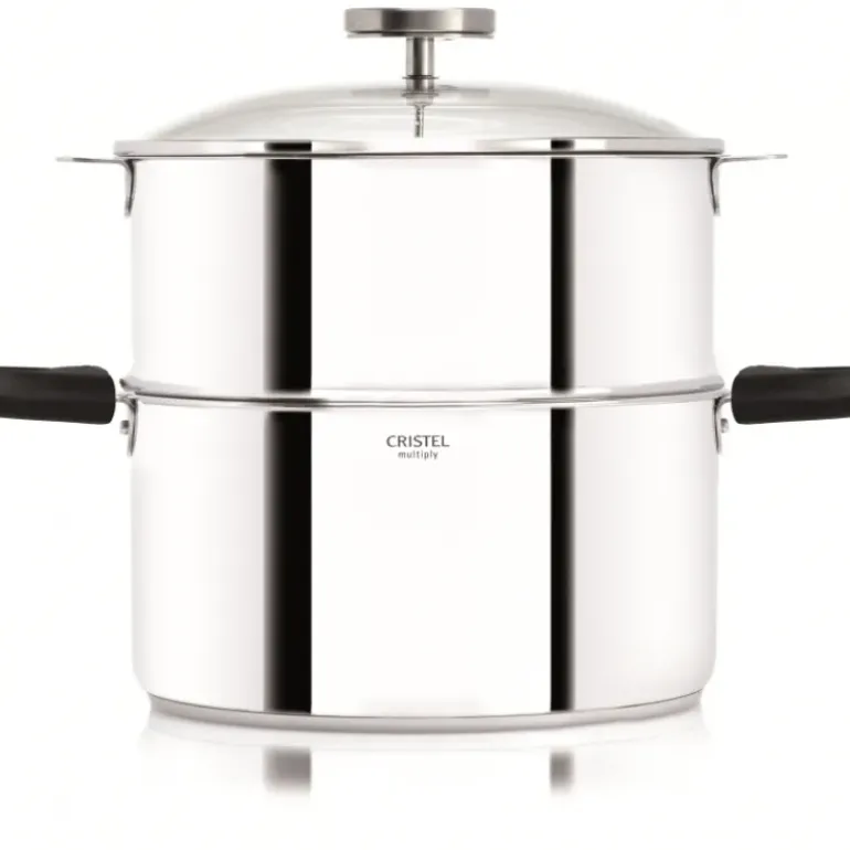 Pour vous proposer une cuisson douce, à la vapeur ou combinée, la marque Cristel a conçu des ustensiles de cuisson complémentaires avec la casserole en acier inoxydable (système Multiply) et le cuit vapeur inox 18/10. La casserole Cristel est équipée d’une graduation sur sa face intérieure, ainsi que d’un large bord verseur pour un confort d’utilisation toujours plus important. Pour le cuit vapeur, l’attention a été portée sur la circulation de la vapeur avec des trous à la taille et à la disposition particulières. Ainsi, les 2 ustensiles offrent une conductibilité thermique optimale pour de bons petits plats grâce à une cuisson homogène. En combinaison avec le cuit vapeur ou seule, la casserole inox ira sur tous les types de feux comme le gaz, la vitrocéramique ou l’induction et même le four pour s’adapter à toutes les cuisines !