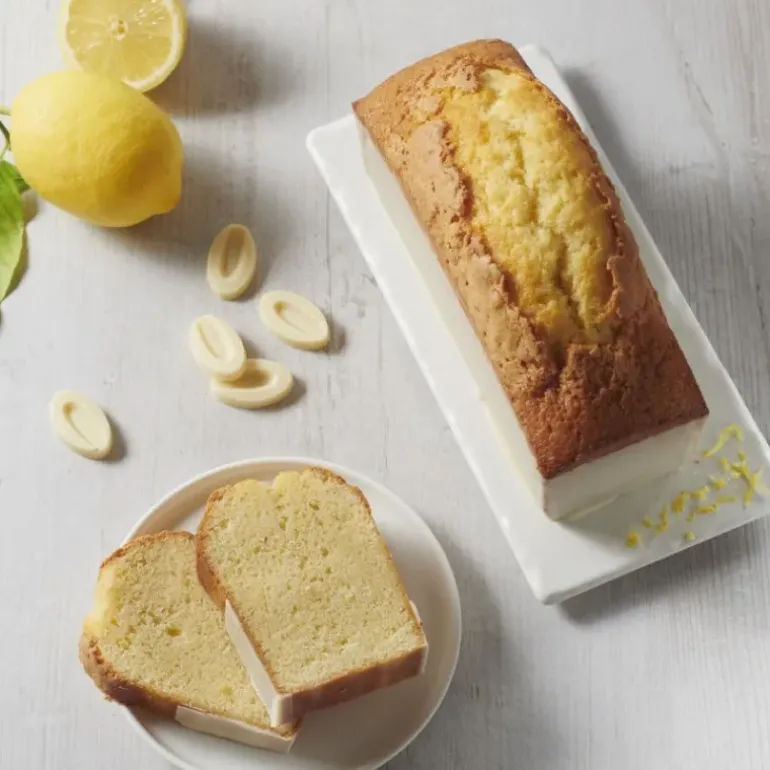 Ingrédients Cake: Le zeste d’1 citron jaune / 180g d’Oeufs / 150g Sucre / 1 Pincée de sel / 100g Crème entière liquide / 180g Farine (petit épeautre) / 3g Levure chimique / 65g Beurre fondu // Ingrédients Glaçage Esquimau Inspiration Yuzu: 200g Chocolat Inspiration Yuzu / 20g Huile de pépin de raisin / 50g Amandes hachées