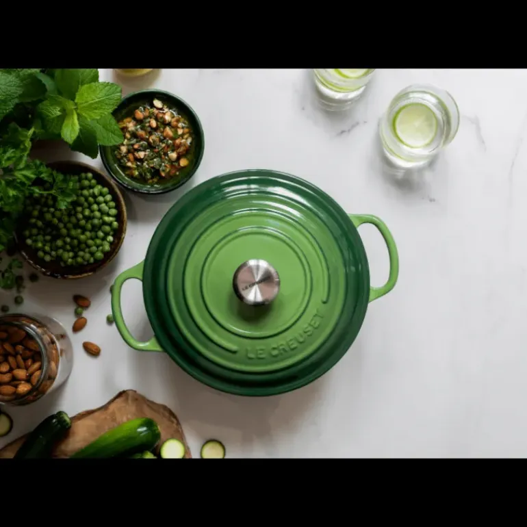 Intemporelle, incontournable et indispensable, la cocotte Le Creuset se décline désormais dans un coloris vert bamboo à la fois sobre et frais.