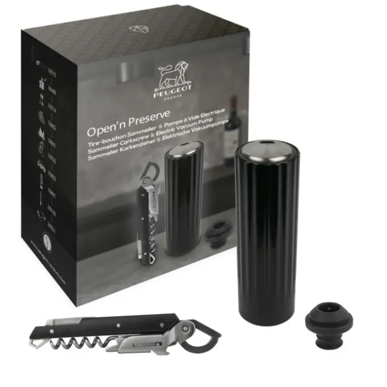 Véritable amateur de vin ? Le Coffret Pompe à Vin Electrique ABS + Tire-Bouchon Clavelin Peugeot est fait pour vous !