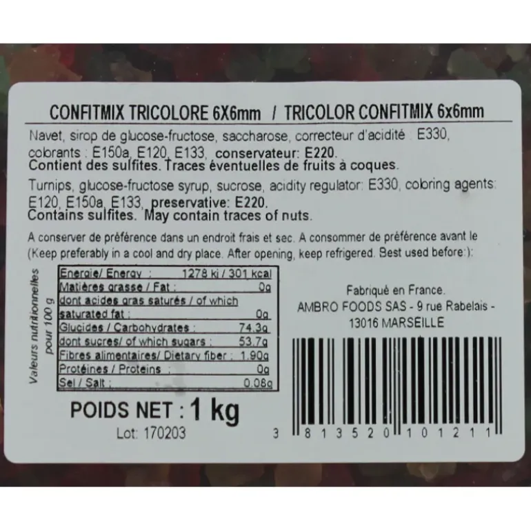 - Contient des sulfites. Traces éventuelles de fruits à coques.