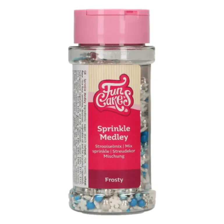 Cette décoration comestible se caractérise par un mélange de formes comprenant flocons de neige, mini-billes, bâtonnets et billes de sucre ; le tout proposé dans des teintes hivernales qui se marient parfaitement entre elles, à savoir le bleu, le blanc et l’argent.