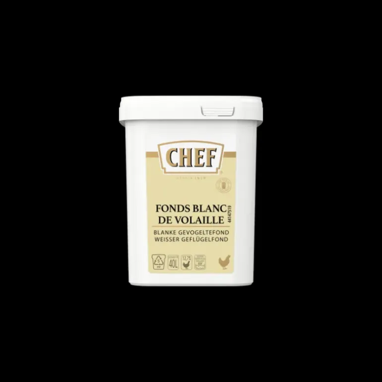 Fonds blanc de volaille : Base pour velouté de volaille et sauce crème, cuisson de légumes et de féculents, fricassées de volaille.