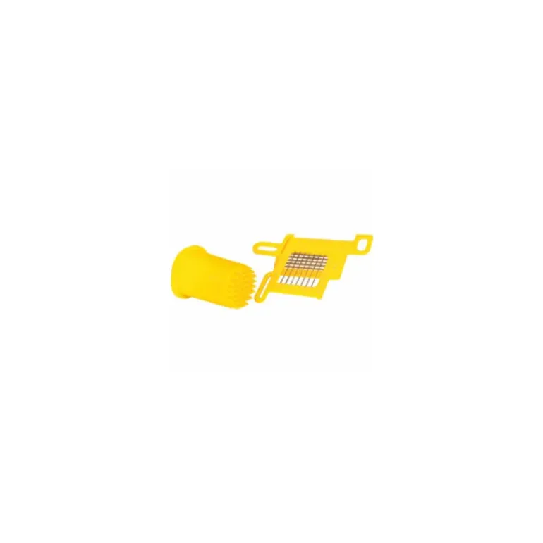 > Ce jeu de deux grilles (inférieure et supérieure) 14 x 14 mm et le poussoir adapté s’utilisent uniquement avec le coupe-légumes Dynacube <