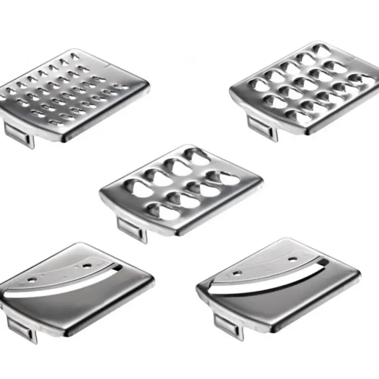 - Contient 5 râpes et un couteau hachoir :