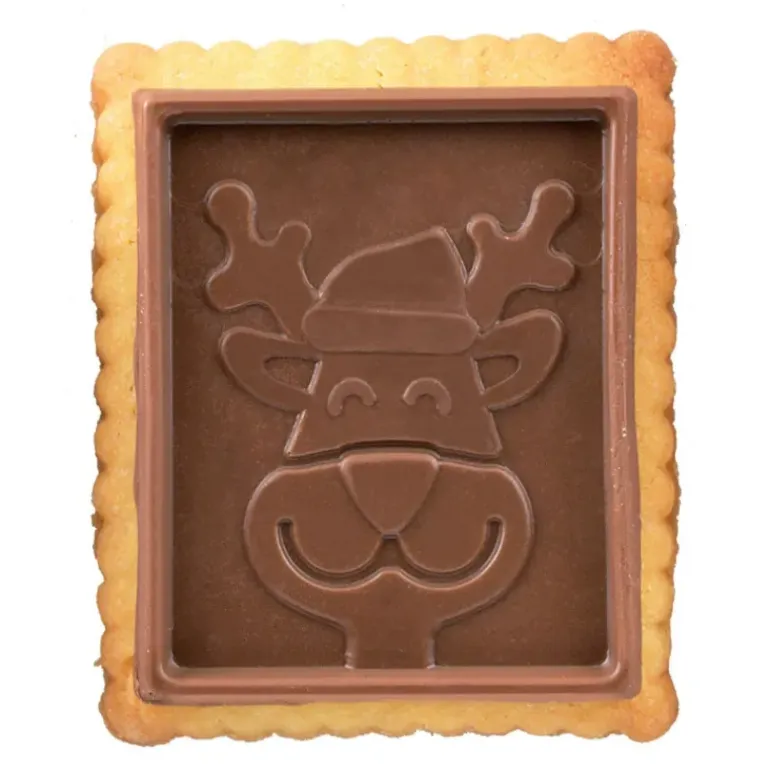 Facile à utiliser, ce kit vous invite à confectionner des biscuits gourmands ornés de reliefs, mettant en scène des motifs de pingouin, de cerf et de bonhomme de neige. L’emporte-pièce reprenant la forme emblématique d’un célèbre biscuit français vous permettra de réaliser de délicieux petits gâteaux maison au croquant irrésistible. Le moule en silicone platinium, aux dimensions de 6,4 x 6,3 x 4,5 cm, façonne des tablettes de chocolat de 5,5 ml chacun, totalisant une capacité de 33 ml.