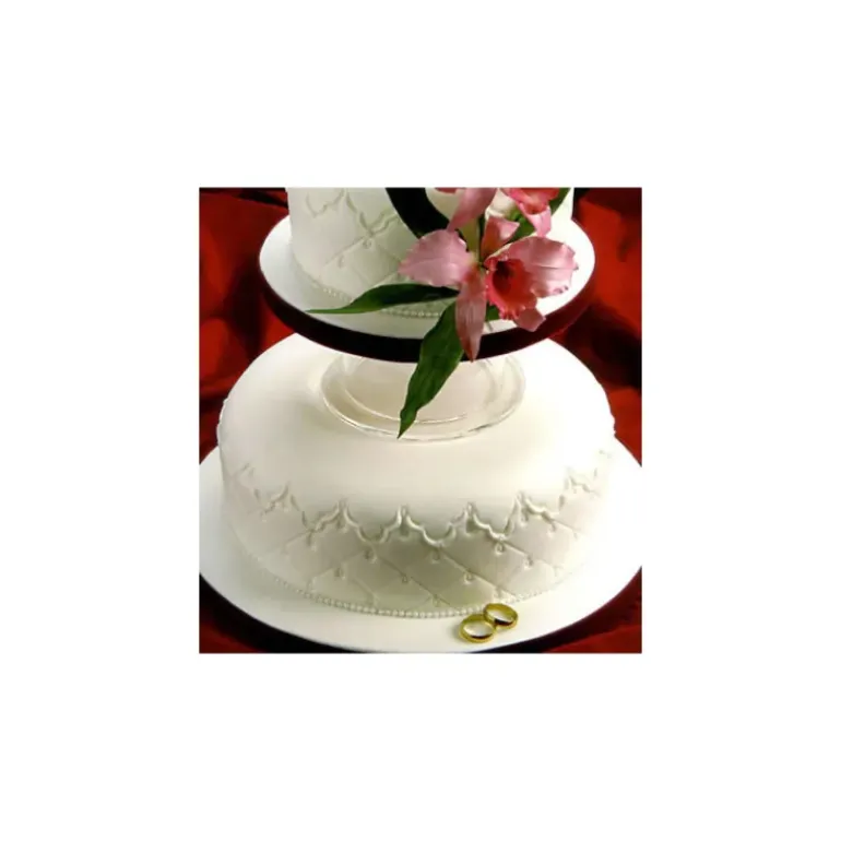 Grâce au Kit Emporte Pièce Diamant, il vous suffit de quelques minutes pour orner votre pâte à sucre qui viendra habiller votre Wedding Cake !