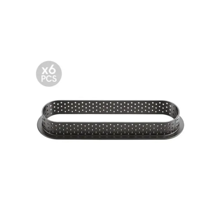 Si vous souhaitiez réaliser de superbes tartelettes oblong, le Kit Moule Silicone 6 Tartelettes Oblong 146mm Silikomart Professional est fait pour vous ! Composé d’un moule silicone à 6 empreintes de tarte individuelle et de 6 cadres perforés de 14,6 cm, ce kit pâtisserie vous accompagnera en cuisine. Cette forme oblong que vous connaissez grâce aux célèbres pâtisseries éclairs est unique et originale ! Votre garniture sera réalisée à l’aide du moule silicone qui est aisément démoulée et lavable. Quant à votre base croustillante, elle sera reproduite grâce au cadre oblong perforé. Muni de petits orifices, ce cadre à tartelettes est idéal pour laisser la chaleur se diffuser lors de la cuisson et garantir une homogénéité sur l’entièreté de votre gâteau.