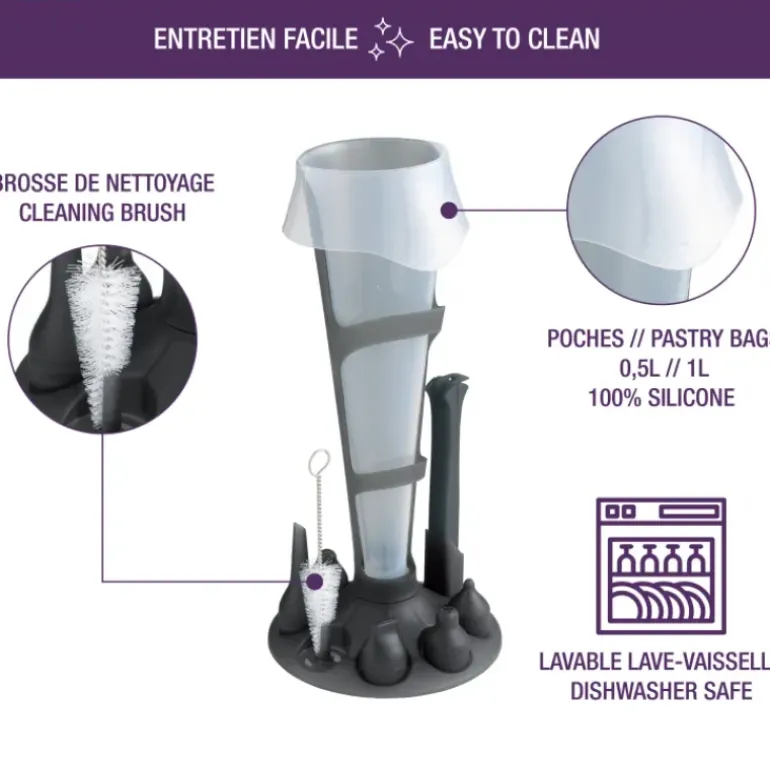 - Contenance des poches à douille : 500 ml et 1 L