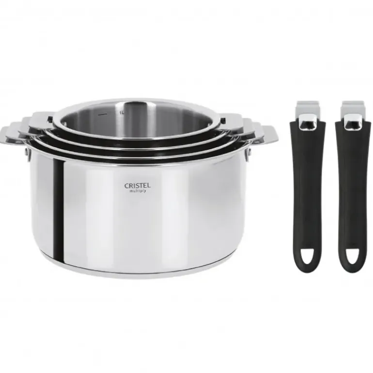 Lot de 4 Casseroles inox Casteline avec 2 Poignées Mutine Amovibles Cristel