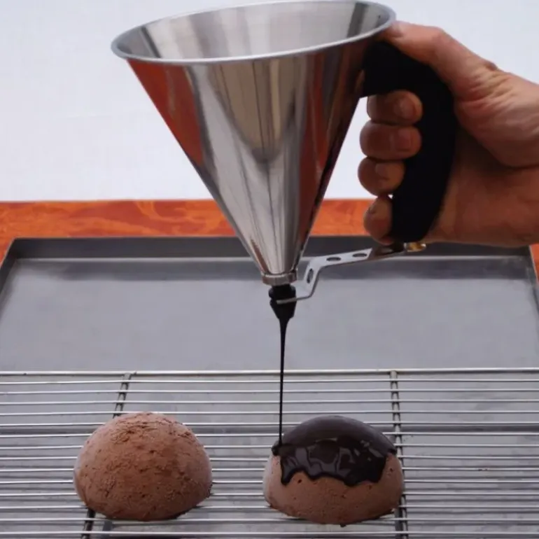 - Conseil d’utilisation : entonnoir réservé pour les préparations très liquides. Non adapté pour le chocolat tempéré