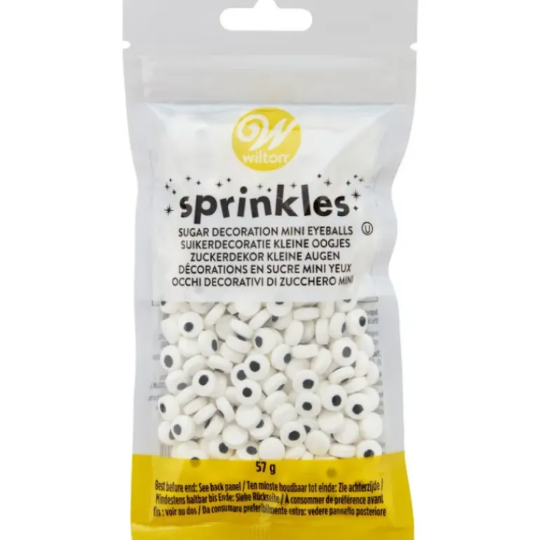 Créez de monstrueux biscuits pour Halloween grâce aux Mini Yeux en Sucre Wilton. Dans ce sachet de 57 g, retrouvez environ 350 Décorations en Sucre que vous pourrez disposer sur vos gâteaux et biscuits.