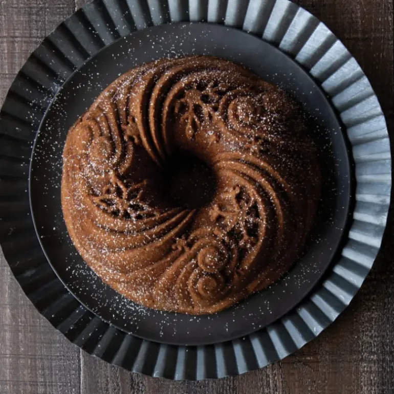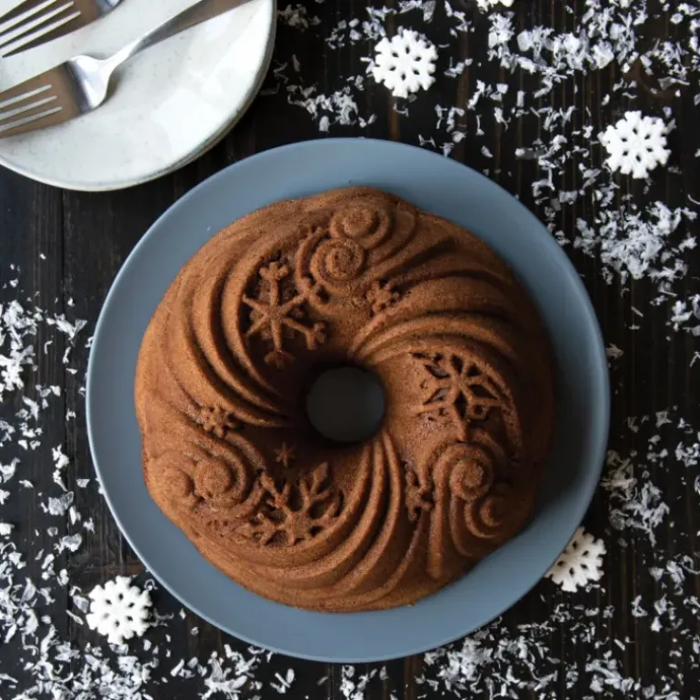 Il ne vous restera ensuite qu’à ajouter une pluie de sucre glace sur votre gâteau pour accentuer l’effet de neige, ou encore repasser sur les contours des flocons avec un stylo en chocolat ou du glaçage. Une fois déposé à table, votre gâteau Bundt aura fière allure et fera briller d’envie les yeux de vos convives.