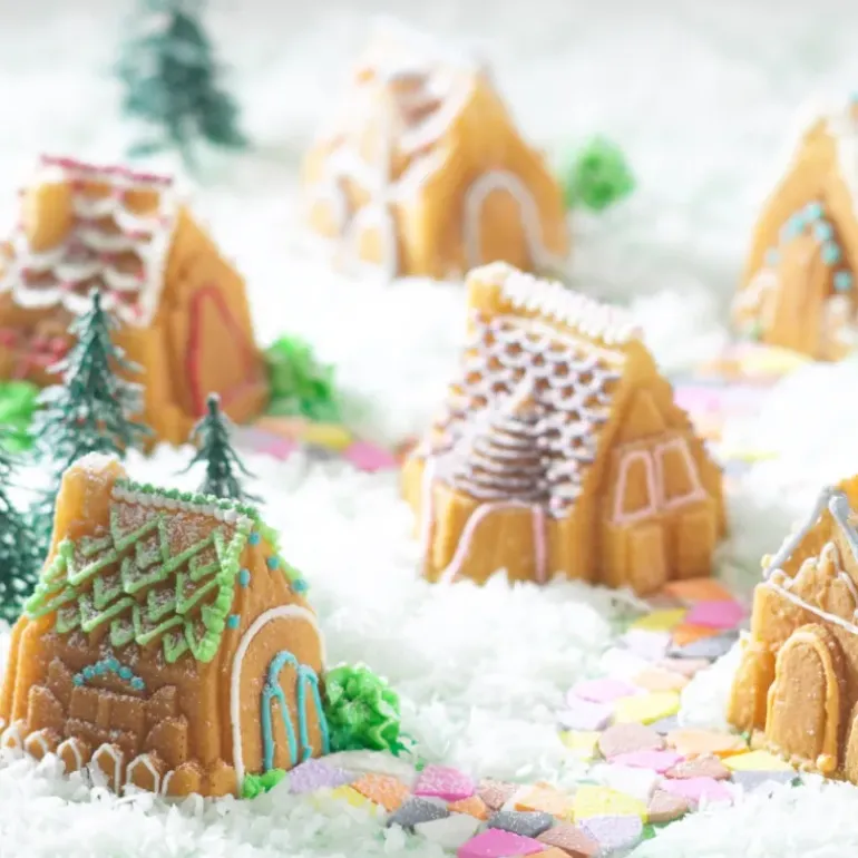 Pourquoi est-ce que le village de Noël devrait être une décoration que l’on à le droit de toucher qu’avec les yeux ? Avec le moule petit village Nordic Ware, petits et grands pourront admirer puis déguster de charmantes petites maisonnettes de Noël.