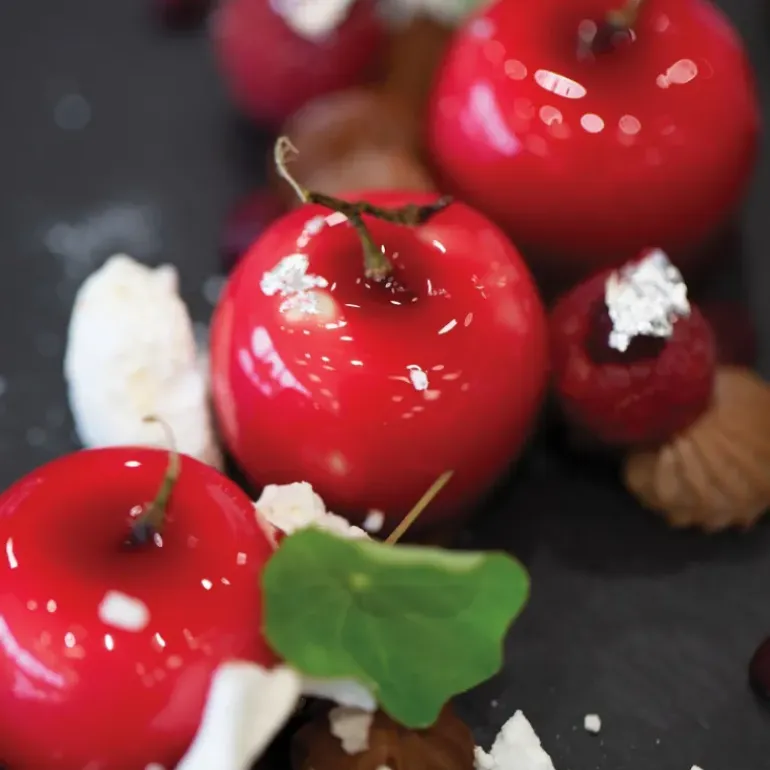 Gâtez vos amis et votre famille en leur rapportant un panier rempli de leur fruit préféré : la pomme ! Aussi gourmandes que celles que l’on voit dans les fêtes foraines ou sur les étalages des marchés, ces pommes, une fois croquées les laisseront sans voix ! En effet, vous êtes devenu un professionnel de l’illusion et c’est grâce au moule pomme de chez Silikomart que vous avez pu réaliser des pommes aussi belles que délicieuses. A l’intérieur de ces trésors culinaires se cache une mousse, un crémeux ou encore un coeur coulant de chocolat !
