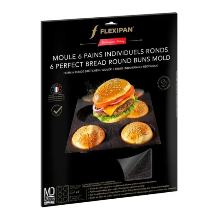 Confectionnez vos pains à burgers maison sans le moindre souci avec le moule à pains ronds Flexipan Demarle. Étudié pour vous être facile et confortable à utiliser, ce moule en silicone est un exemple de la qualité dont fait preuve la maison Demarle.