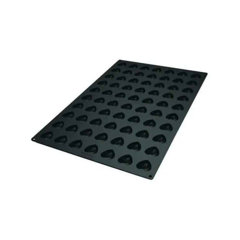 Silikomart a développé un moule coeur silicone pour les pâtissiers professionnels, spécialement conçu pour reproduire 70 mini coeurs ! Avec ce Moule Silicone 70 Mini Coeurs 3,6 x 3,9 x H1,6 cm 11ml SilikoMart Professional, vous pouvez être certain de créer de mini chefs-d’oeuvres qui feront fondre le coeur de la personne qui fait battre le votre. Ainsi, après avoir garni chaque empreinte de préparation, telle qu’une mousse ou une crème, laissez reposer vos gâteaux coeurs au frais. Ce moule silicone coeur, de qualité professionnelle est ultra résistant aux écarts de températures (-40°C à 300°C), ce qui vous permet de proposer de délicieux entremets cuits ou glacés.