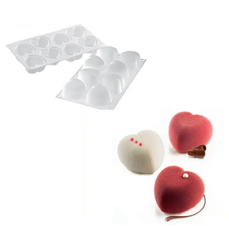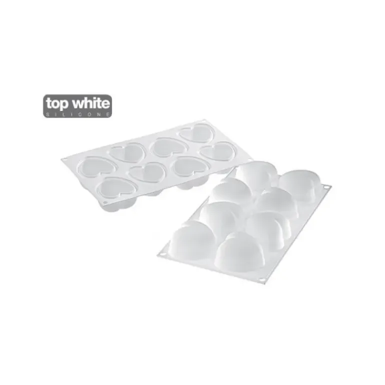 Moule Silicone 8 Coeurs Bombés 6,35 x 6,5 cm 100ml SilikoMart Professional
