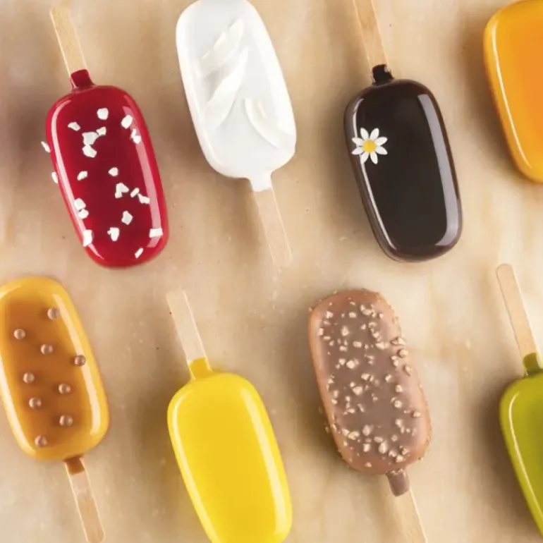 En effet, il vous suffit de verser votre appareil à glace ou votre purée de fruits directement dans le moule à glace sans oublier d’y insérer les bâtonnets en bois fourni, un tour au congélateur et le tour est joué ! Il ne vous restera ensuite qu’à enrober vos glaces de chocolat (noir, au lait, blanc, ruby…) et de décorer avec ce qu’il vous plaira : décors en sucre, ou paillettes alimentaires par exemple. Grâce au moule silicone capri, vos étés seront bien plus frais et gourmands !