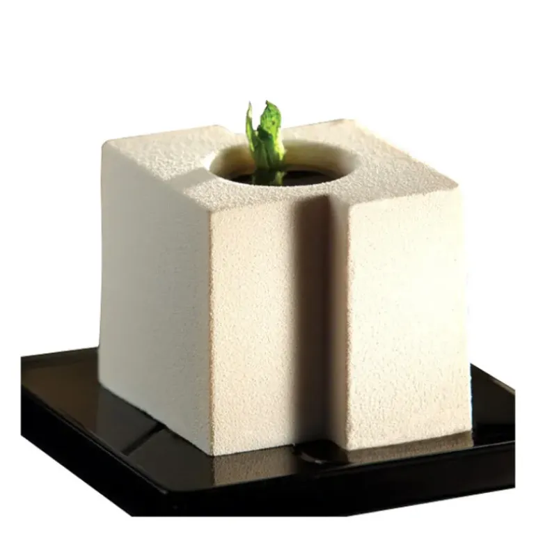Toutes vos créations sont réalisable grâce au moule en silicone Pavoflex passant au congélateur (-40°C) ainsi qu’au four (300°C). Préparation sucrée ou salée, la forme de ce Cube Tekno habillera vos assiettes d’élégance et d’originalité.