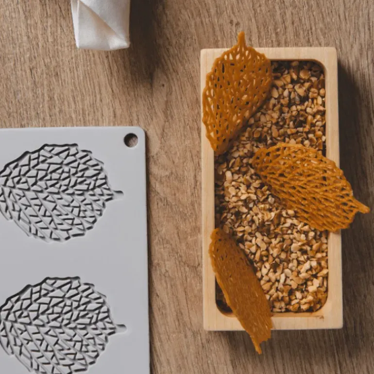 De qualité professionnelle, le moule en silicone de couleur gris vous permettra de réaliser des décors comestibles sucrés ou salés en forme de feuilles. Le moule silicone est souple et démoulera comme il se doit les feuilles comestibles réalisées. Ce moule à gâteaux original possède 8 empreintes d’une contenance de 3 ml chacune. A déposer sur vos gâteaux relief, ces décorations épurées sur le thème de la nature réalisées avec ce moule Pavoni, apporteront une touche de finesse et d’artistique.