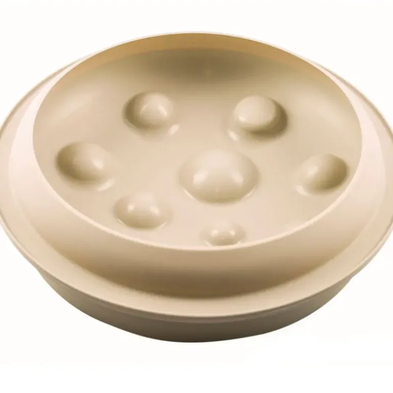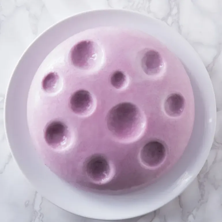 Le moule silicone Luna Silikomart 3D Design arbore une forme arrondie et ce, jusqu’à la base, ce qui lui donne cet effet de légèreté. La surface présente des renfoncements, imitant la surface de la lune. Pourquoi ne pas remplir les cavités d’une gelée de purée de fruits, ou encore d’un coulis de chocolat blanc auquel vous aurez ajouté un peu de colorant alimentaire pour imiter une palette de peinture ?