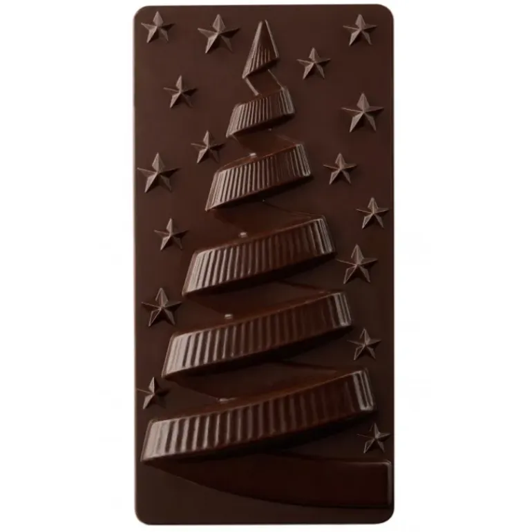 Laissez une empreinte délicieuse et esthétique dans chaque création chocolatée grâce au Moule Tablette Chocolat Sapin de Noël Nuit Étoilée de Pavoni.