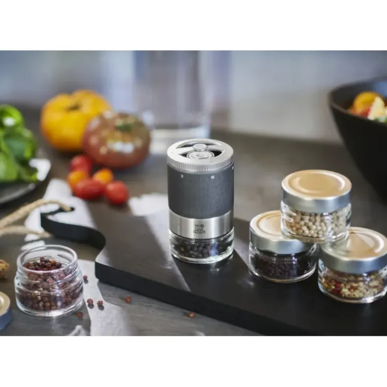 Ce moulin à poivre manuel de 11 cm est paré d’une teinte graphite gris foncé, le rendant aussi beau que pratique. Idéal pour moudre poivre blanc, noir, vert, rouge, baies roses et graines de coriandre ce moulin Peugeot peut être complété par le Set de 3 Pots Vides pour Moulin à Poivre Maestro Peugeot.