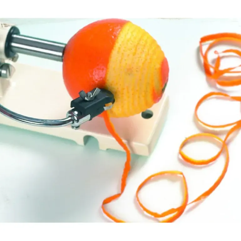 Le Pèle pomme Kali pèle, coupe et évide les fruits à trognons en une seule opération. Peut être utilisé pour éplucher les pommes de terre et les trancher (chips…), pour faire des zestes de citrons et d’oranges…