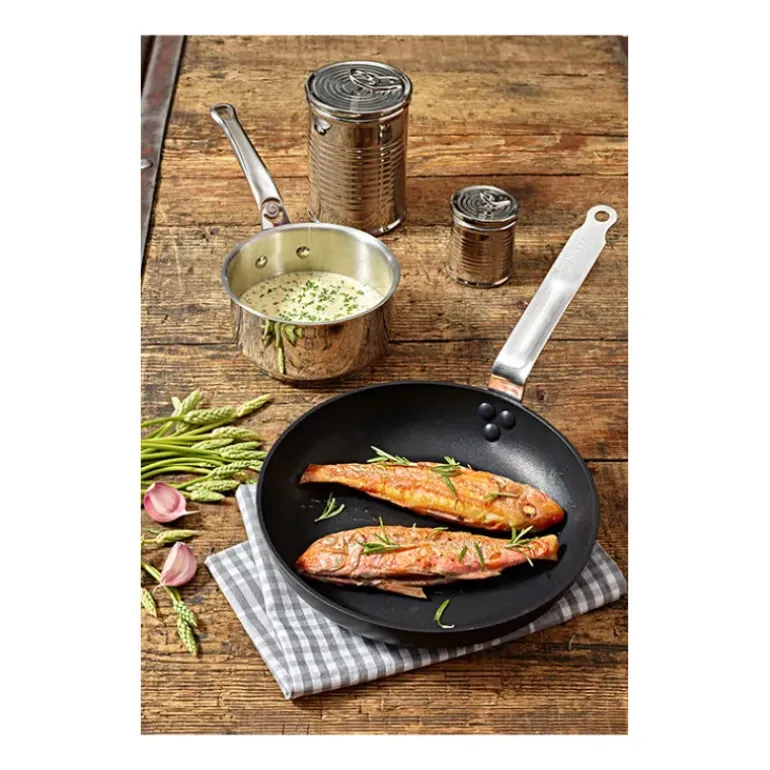 Pour faire réchauffer vos plats, ou lier une sauce : la Poêle Anti Adhésive De Buyer est idéale. En plus d’offrir une montée progressive et uniforme de la température, cette Poêle Ronde est indéformable. En effet, celle-ci est issue de la gamme Choc Intense De Buyer et est fabriquée en aluminium forgé.