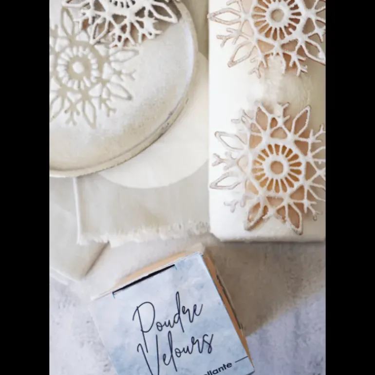 Découvrez la fabuleuse Poudre Velours Neige Etincelante 100 g Scrapcooking qui sublimera vos bûches ainsi que vos entremets !
