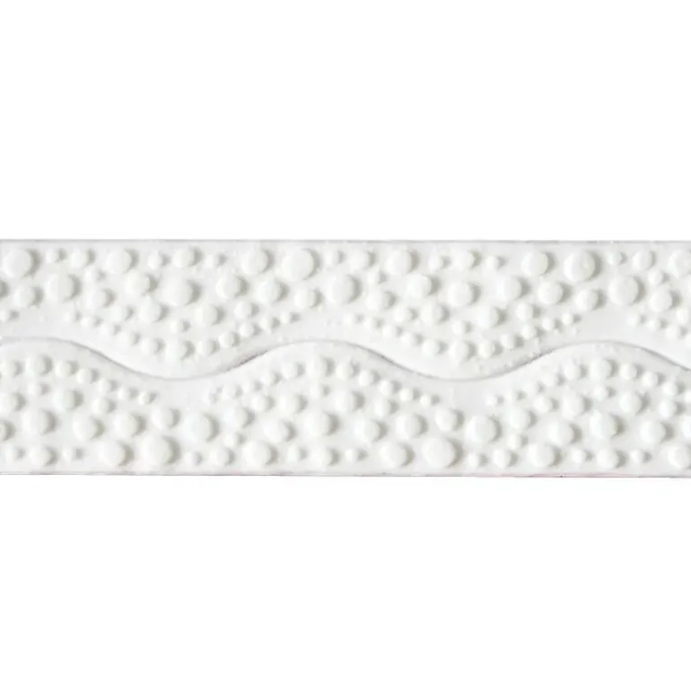 Ces 2 rubans de longueur 1,25 m et de hauteur 3 cm sont directement prêts à l’emploi. Le ruban pâte à sucre vous sera à la fois d’une grande utilité et d’un gain de temps. Une fois déposé autour de vos créations, le ruban pour gâteaux au motif bulle fera tout son effet et viendra éblouir tous vos convives.