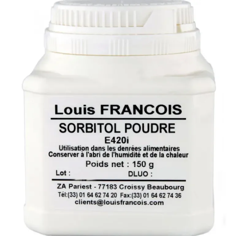 Le petit conditionnement du sorbitol en poudre Louis François en 150 g se révèle très pratique pour les particuliers comme pour les professionnels.