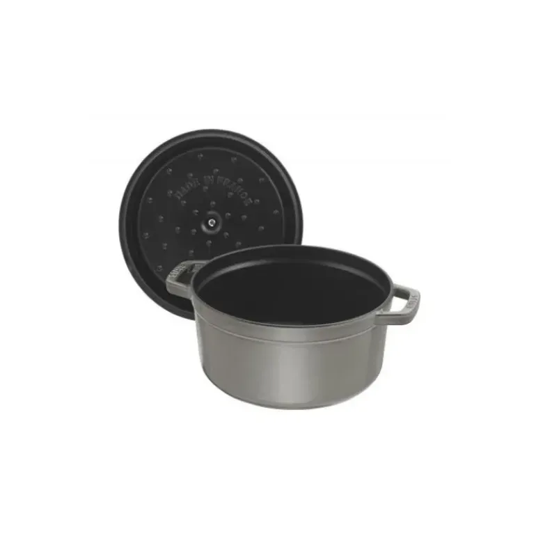 Grâce à la fonte, votre cocotte en fonte Staub conserve également le froid : parfaite pour garder au frais vos compotes, crème glacées et autre desserts réalisés comme dans le temps à la cocotte. Et pour une présentation authentique et raffinée, apportez la cocotte en fonte grise sur la table, vos invités seront conquis.