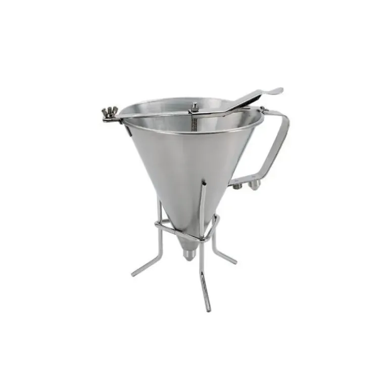 Support d’entonnoir tout inox. Bonne stabilité.