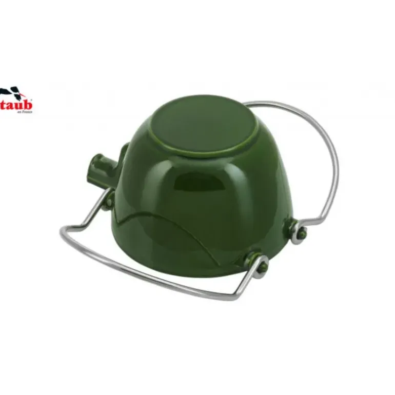 La Théière en Fonte Staub se caractérise par une très grande solidité et une capacité exceptionnelle à conserver la chaleur. D’une capacité de 1.15 litres, elle affiche une élégante couleur vert basilic. Attention au moment du service ! Une fois remplie, la théière en fonte Staub se montre assez lourde.